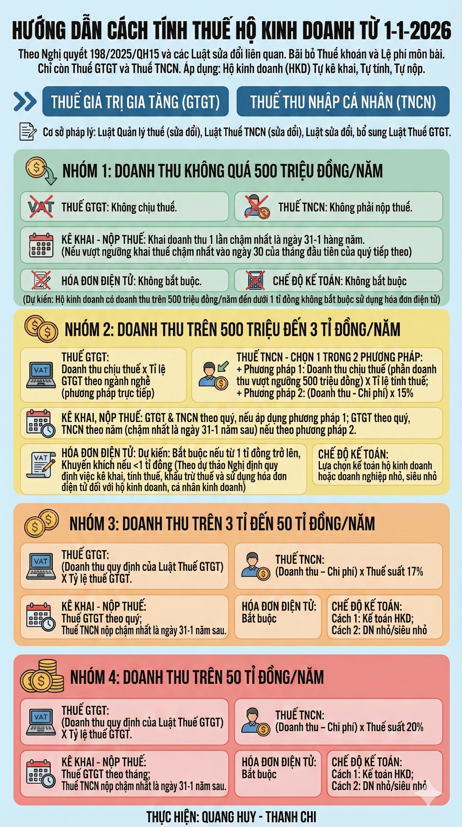 Trang chủ > Văn bản pháp luật > Văn bản về thuế > Thuế cá nhân kinh doanh > Cách tính thuế 4 nhóm hộ kinh doanh từ 01/01/2026